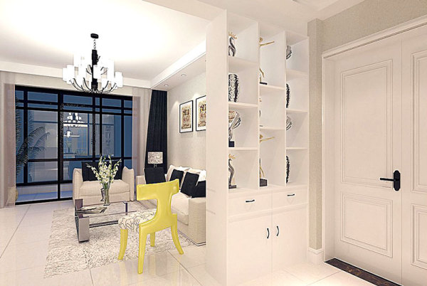 2.屏蔽功能设计:门廊屏幕也可以起到屏蔽作用。在房间门口放置一个入口屏幕,可以用来悬挂雨衣和衣服,并覆盖外面的世界,以避免一览无余的房子。同时,它还可以覆盖房子里的杂物,屏幕可以起到阴影的作用。输入屏幕的主要功能是间隔。通常,最好关闭屏幕,高度不应低于视线。