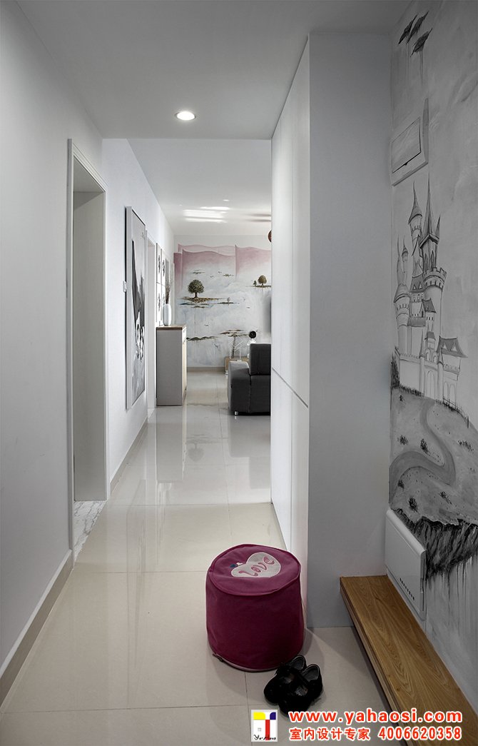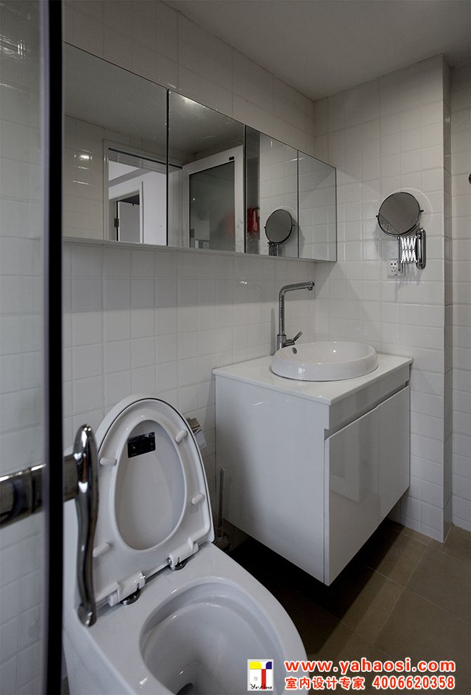 气的白色地砖相互映衬,整个空间温馨又不失大气,清新又不失时尚,处在这样的空间中,伴随着