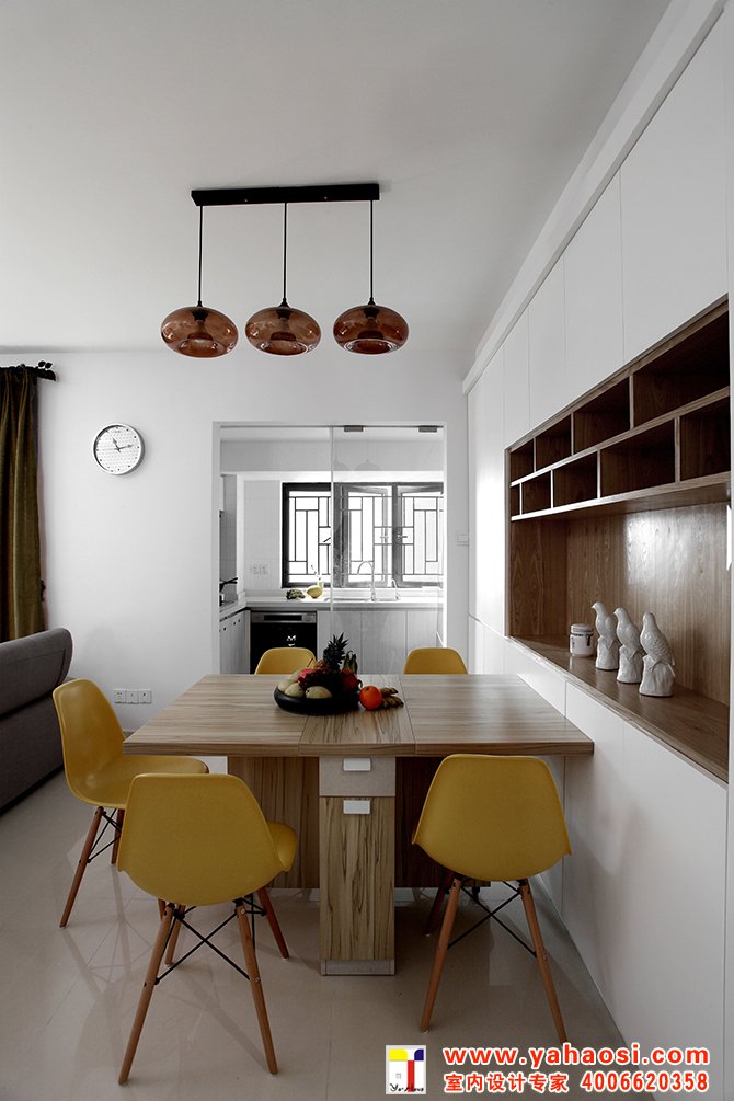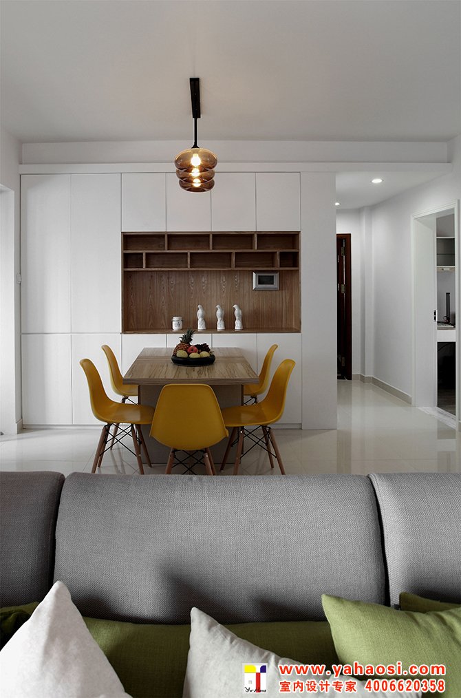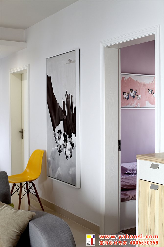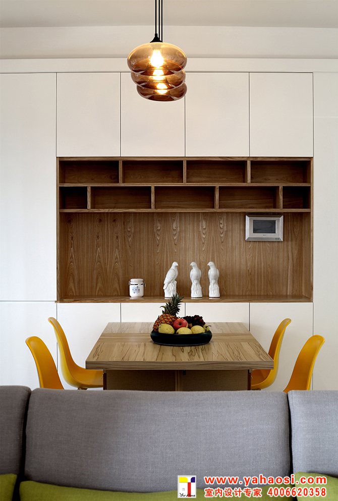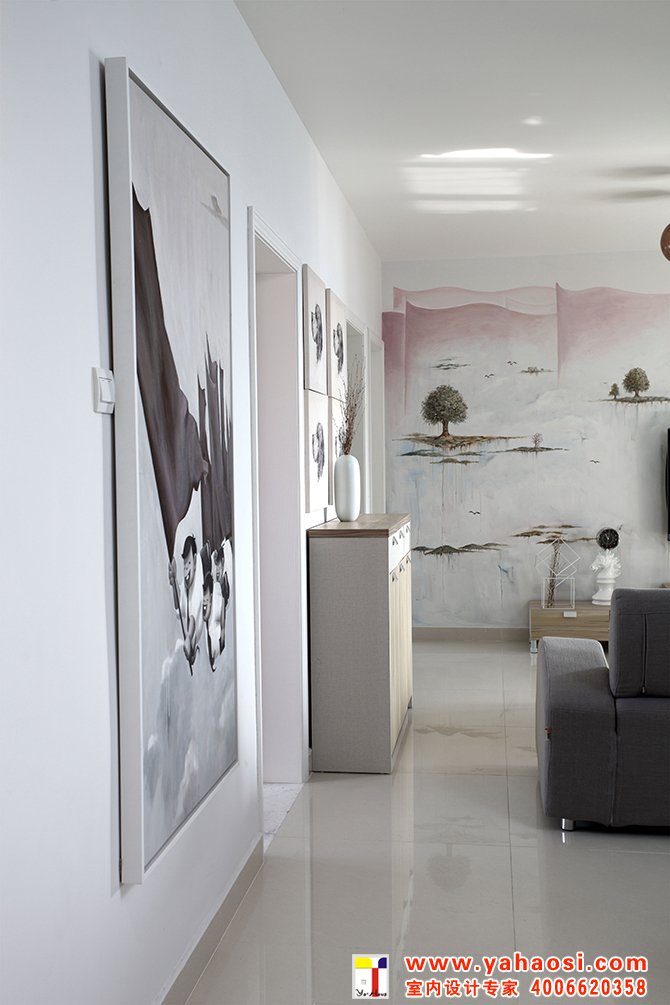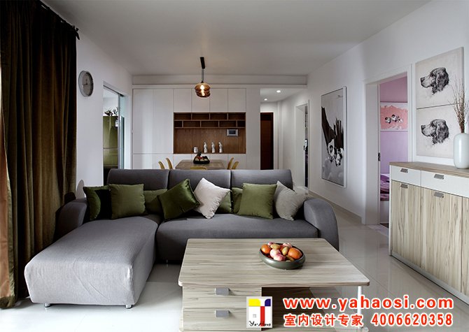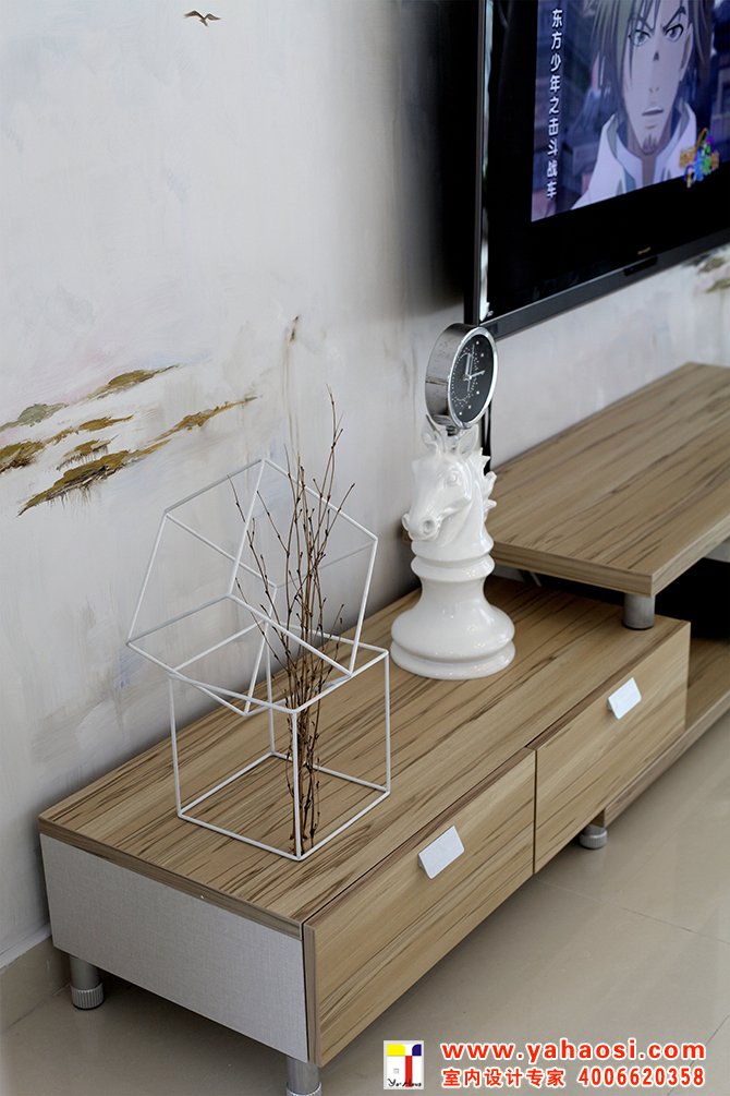 人一种安静舒心的居家感受,通过木纹的茶几的映托让空间时尚中带有自然清新之感,更与简单大