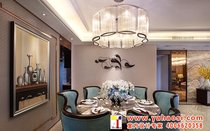 质从雅的质感。大理石柜、金属茶几、实木桌、陶瓷摆件等材质深浅颜色、软硬质感的对比,把每