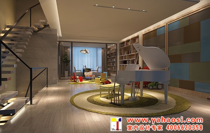 在兴奋的东奔西跑,偌大的客厅设计成了一家人的休闲舞台。