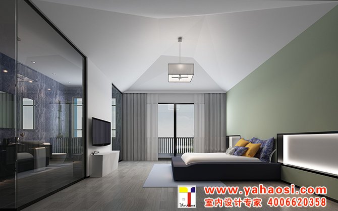 清晨,主人在慵懒的晨曦中醒来,主卧灰灰的绿,洗手间淡淡的蓝,一天的生活在生命的色彩中
