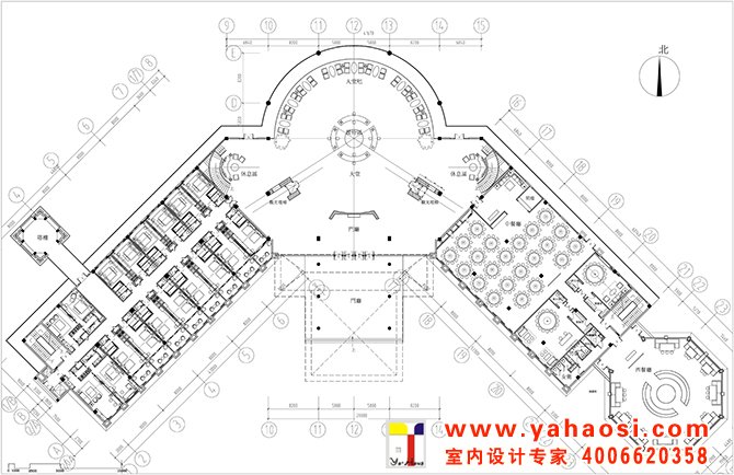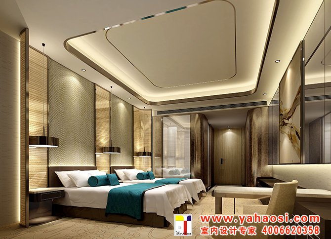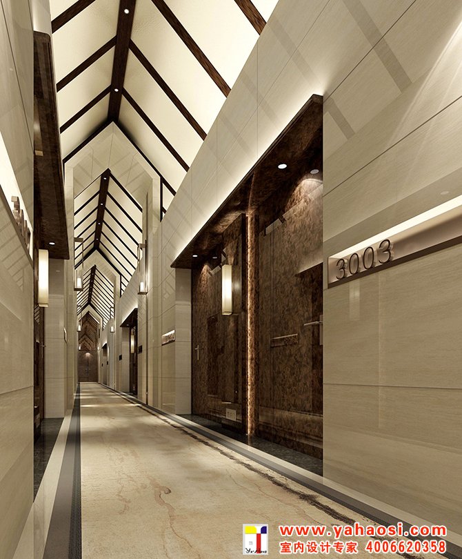 发,其色系推行到客房,餐厅,宴会厅,走廊,等各空间,完成了统一形象中各富特色的空间