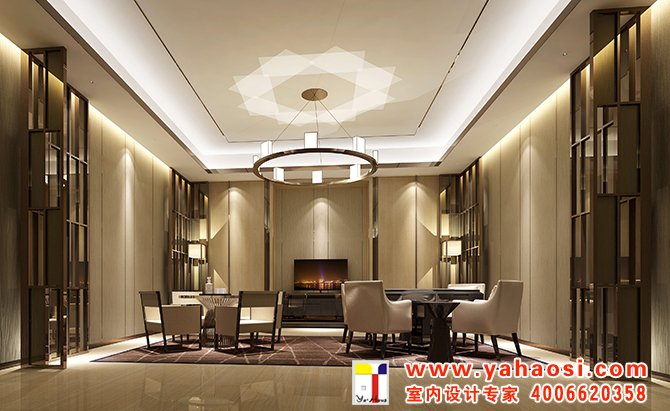 穿透视线,又不至于有闭塞的感觉,并遮掩了屏风后的不规则土建结构,从而使多层次照明贯