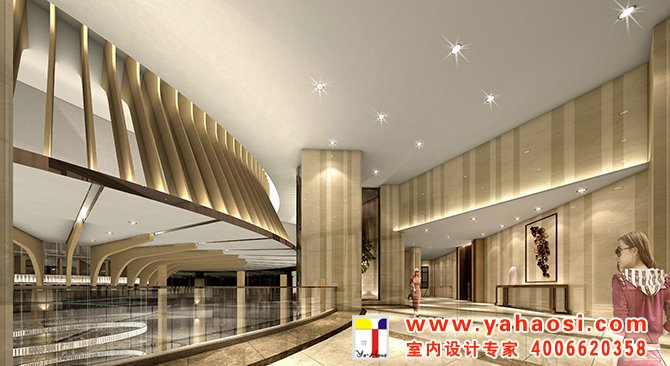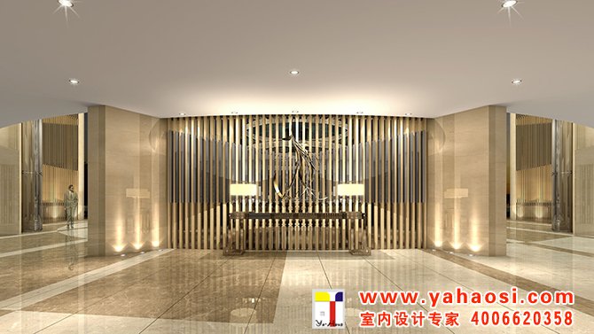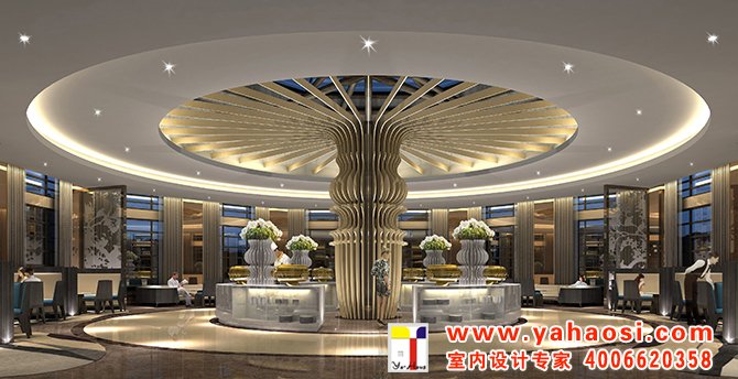 其组合构成一个虚化的台灯和台灯支座概念,成为大堂新的视觉中心;而南北穿透视线的问题