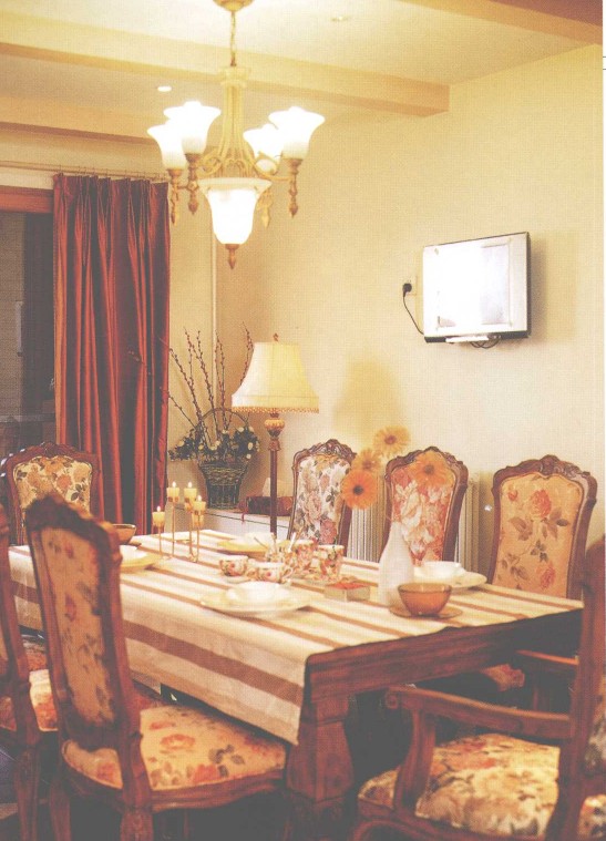 欧洲古典风格的餐厅在设计上追求的是奢华与典雅.具有浓郁欧洲皇室古典韵味的餐桌椅让整个餐厅都显得华贵与雍容体现出主人的品位与享受生活的态度.