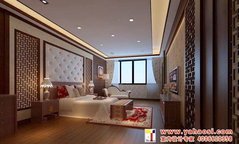 别墅中式装修空间比较大,不过,别墅装修上的卧室怎么布置,对我们的家居生活有着极大的影响的。尤其是卧室色彩的使用,除了讲究协调感和层次感,还需注重其舒适与否。