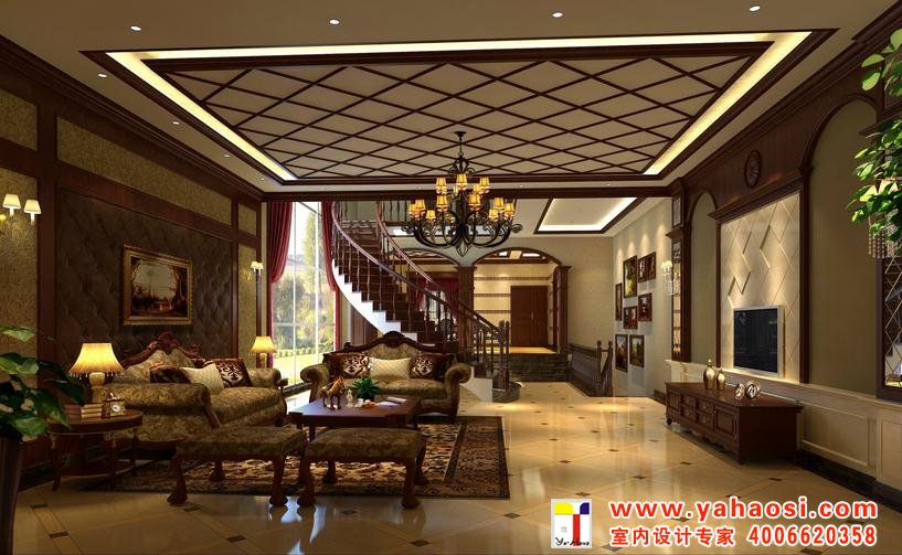 别墅装修设计中,习惯在沙发范围内放一块地毯,不仅仅是增添美感,且可以可突出沙发在客 厅中的主导地位,亦是客厅风水布局的一部分,沙发前的一块地毯,其重要性便有如屋前的一块青草地,亦有如宅前用以纳气的明堂,不可或缺。