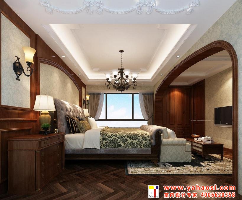 别墅欧式装修上卧室壁纸使用要注意各个方面的细节,比如,美观性与否,和室内整套风格是否搭配,是否影响夫妻之间的关系爱,以及自己的运势等等。
