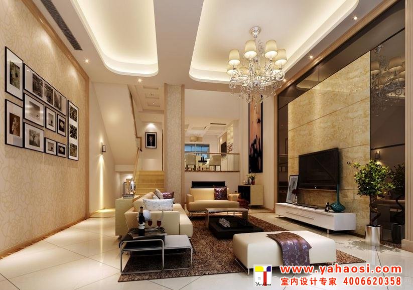 1、款多多样的墙纸及壁布。这个是现代别墅装修中很常见的做法,墙纸有着众多的花色与图案,而选出一些来搭配整个客厅那是太简单了,而且也很好看,如果看久了想换也很方便。