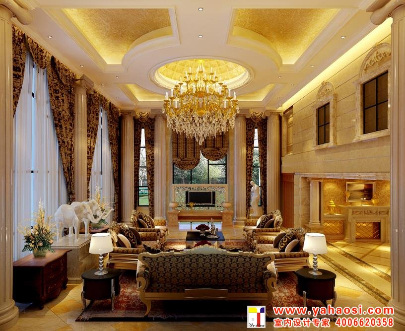 别墅欧式装修上室内摆放家具的话,会或多或少发生死角,且会破坏掉整体协调之感。解决这种矛盾不难。应该根据客厅具体状况,设计一些合适的家具。靠着墙面展示柜以及电视柜要定身制作,节约每一寸空间,视觉上保持清爽的感觉。自然显得十分光亮。且地面使用浅色材料,避免深色吃光,能增加客厅内的光亮度。