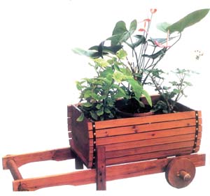 (2)花坛类型:在阳台水泥台上或设置在铁架边缘,做一些合适尺寸的条形木槽、水泥槽,并有一定的深度、中间土壤、及时播种、幼苗、花木生长,直到叶茂、花、结果。