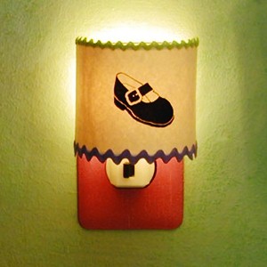 那温柔的灯光就如在安抚可爱的婴儿;优雅暗淡的气氛, 给人以夜幕初降的朦胧感。坚固的金属框架以纸板围着,印上玛丽的鞋子,并以淡紫色的波曲形的花边做修饰。