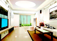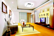 设计语言:上图陈设简单的客厅中,简洁实用的电视墙充分显示着客厅的宽大与舒适。简洁流畅的 线条 ,和谐自然的颜色搭配,充实丰盈的灯光把整个客厅烘托得舒适大方。