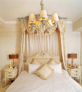 完成了空间的设计之后,罗小姐把精力花在房间的装饰上。她充分运用了长久以来对家具、布艺、色彩的积累,同时,她还有一位很专业的朋友,居佳伴的孙华王利小姐。罗小姐所有布艺软装饰方面的想法,都由孙小姐帮她完成。最让人难忘的是主卧室里带幔帐的床。罗小姐的最初灵感来自《飘》中郝斯嘉的床。很久以来,她觉得做一间香槟色与银色相间的卧室会非常漂亮,现在,这样的卧室就在眼前,我们也为它的华美所震惊。