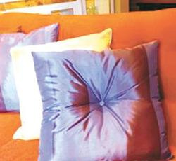 记者在家具商场发现,今年的时尚亮点之一是那些颜色明快大胆、式样简单大方的防污布系列抱枕。防污布的颜色非常鲜艳动人,跳跃着橘红、橙黄、嫣蓝、粉紫等最流行的时尚颜色。这一方面和它的化学成分有关系,另一方面是因为它容易清洗,所以能够大胆运用那些不耐脏的颜色。