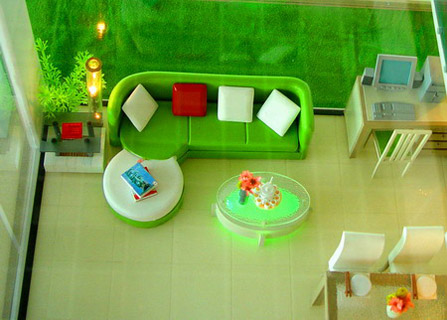 家具是居室布置的基本要素,如何在有限的空间内使居室各功能既有分隔,又有内在联系、不产生拥挤感,这在很大程度上取决于家具的形式和尺寸。造型简单、质感轻、小巧的家具,尤其是那些可随意组合、拆装、收纳的家具比较适合小户型。或选用占地面积小、比较高的家具,既可以容纳大量物品,又不浪费空间。小户型居室放置家具的另一大特色就是向纵向发展。如选择高脚的床具,这样一来可将床面抬高,不知不觉中增加了床面以下的可利用空间,或者干脆买张两用床,白天收起当 沙发 ,晚上放下当床铺,一举两得。电脑对于年轻人来说是必不可少的学习和办公用具。但是在小居室中既要放下电脑桌,还要再添一个大书架或书柜就显得有些拥挤了,因此在选择时当然要选择具有集纳作用的整体书房。如果房间小,又希望有自己的独立空间,那么在居室中采用隔屏、滑轨拉门或采用可移动家具来取代原有的密闭 隔断 墙,使墙变成“活”的,同时使整体空间具有通透感。