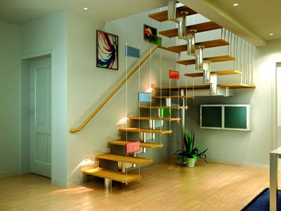 楼梯间:在复式结构的房子里,楼梯不仅仅是一个功能上的必需品,更重要的是它能够体现装修的效果。结合整体风格,楼梯的一侧扶手被简化到直接装在墙面上,另一侧则运用了钢丝绳,线条感较强。