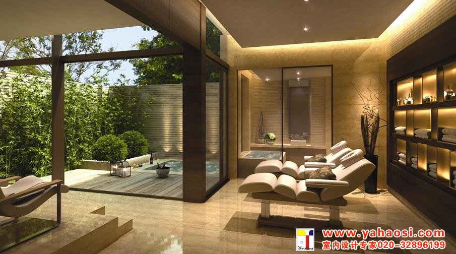 1、开放式店面。即SPA会所正对大街的一面全部开放,没有橱窗隔档,顾客可以随便进入,没有任何障碍。SPA会所一般情况下不适用这种形式。