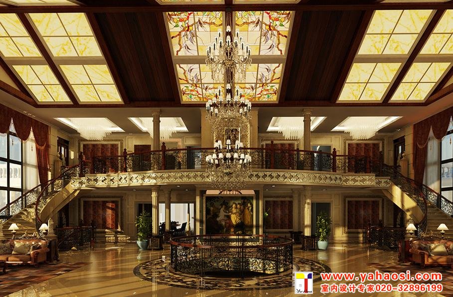 2、会所中式装修上,色彩的选择要注重和会所的五行生克达成能量平衡。会所大厅要是位于了会所的西南方位或者是东北方位,一定要使用黄色系,是比较有温馨之意的,要是大厅此时位于了东南方或者是正东方的地方,应使用绿色。