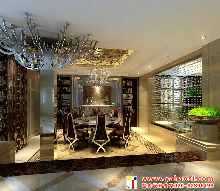 2、用华丽的艺术装饰点缀浪漫 欧式古典风格的餐厅色彩主调为白色。采用古典弯腿式家具。不露结构不见,强调表面装饰,多运用细密绘画的手法,具有丰富华丽的效果。为体现华丽的风格,家具、门、窗多漆成白色。但古典欧式的餐厅有的不只是豪华大气,更多的是惬意和浪漫。通过完美的典线,精益求精的细节处理,带给家人无尽的舒服触感,实际上和谐是古典欧式风格的最高境界。 可见,欧式古典的餐厅装修设计不但给人豪华的气息,而且给人一种不同而又强烈的视觉感受,这是人们享受用餐的一个很好的选择地方,让你心旷神怡。注重精细的装饰设计,更让你赏心悦目。