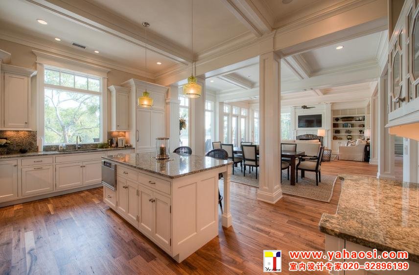 别墅装修厨房的操作环境是高温环境,挑选瓷砖的颜色应当以淡色和冷颜色为主,比如白色、浅绿色、浅灰色等色泽,这样的颜色会令人在高温条件下感受到春天的气味和凉意,并且,淡颜色能令人感受空间在扩展延伸,防止了深颜色在狭小的空间里使人感到烦闷和压抑。