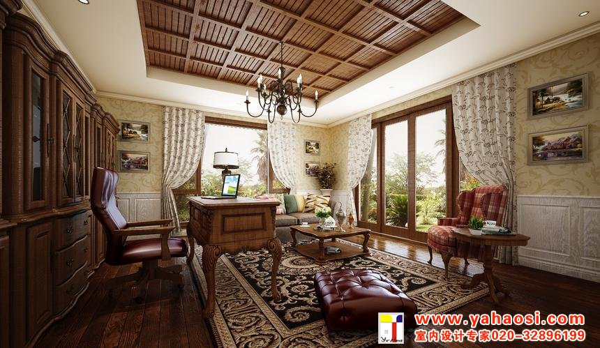书房美式风格的书房要以简略有用为主,硬装造型不是要点。可是突显个性和历史感的小件配饰是十分重要的。如鹅毛笔、古旧书本、发黄的帆海地图等。美式村庄个性力求体现舒服、闲适且复古的感受。实木的厚重家私,碎花图画的地毯、窗布、靠垫都是必不行少的元素。
