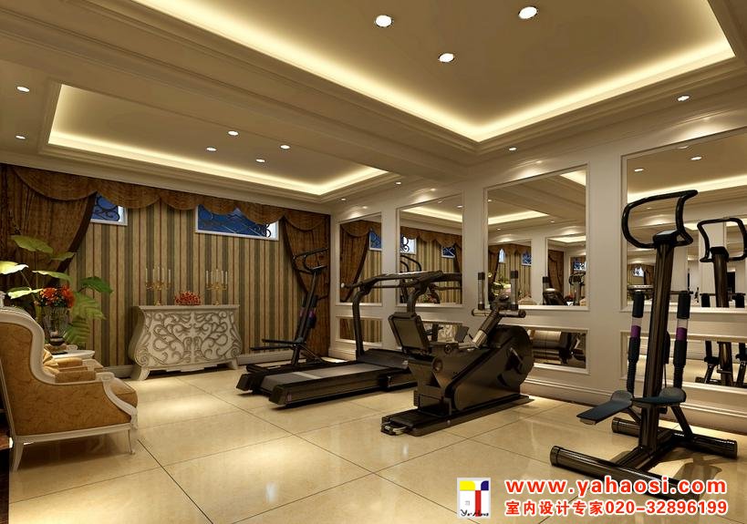 首先,健身房的装修一定要对健身房的功能区域合理划分。健身房的功能区域分为必要功能区域和扩展功能区域。
