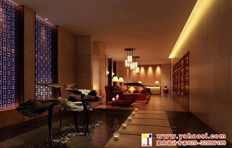 1、灯光:作为SPA会所装修中关键的一点,要比一般的灯光设计要更细致。灯光要柔和、均匀,光源本身还要有防水散热的功能和不易积水的结构。面部整理空间对照度和光线角度要求相对比较高,照明灯具最好是安在化妆镜的两边,其次是顶部,另外还要考虑架设背景光源,以增加气氛。