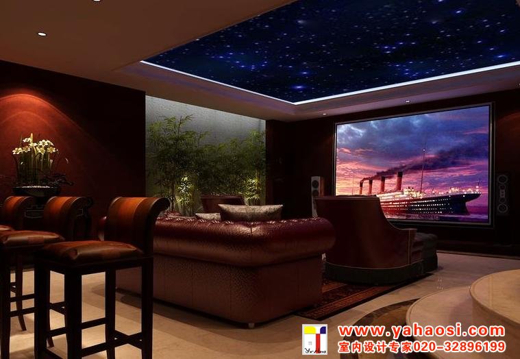对于别墅影音室设计来说,灯光设计是最不能被忽视的地方。影音室的灯光处理要适当,灯光可以为影音室营造戏剧性效果、反差、情绪以及氛围。在一间家庭影音室里,并不总是要考虑能看到的东西,还要考虑看不到的东西,所以影音室的灯光很复杂。