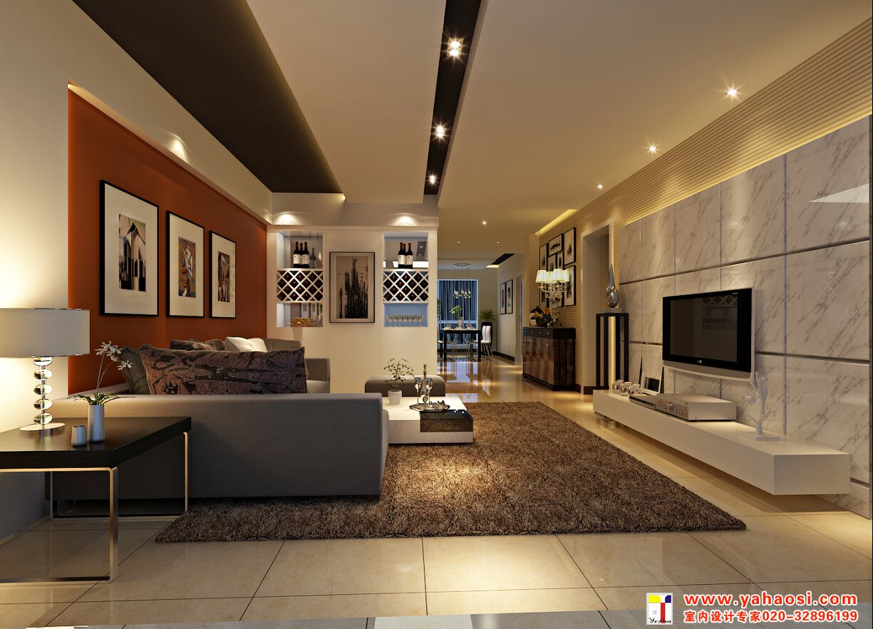 4、别墅室内照明设计氛围原则:家庭是需要气氛的,这可以体现在方方面面,例如射灯、筒灯、金卤灯洗墙,柜底灯带制造悬浮效果等。