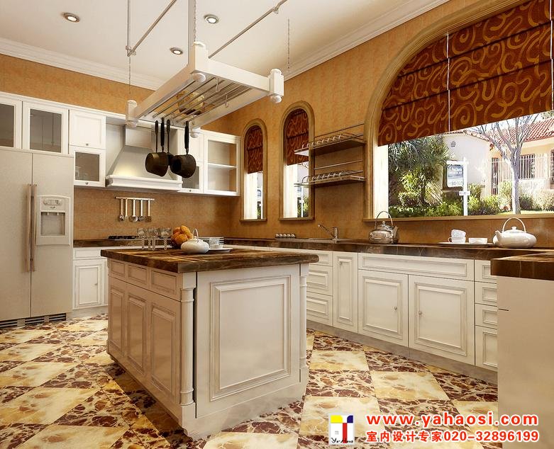 2、厨房的整体采光、配色、开放式厨房(别墅较多)的区域分配、功能细化、与整体设计的协调性等,充分利用别墅厨房的开阔性等特点来考虑设计的合理性。