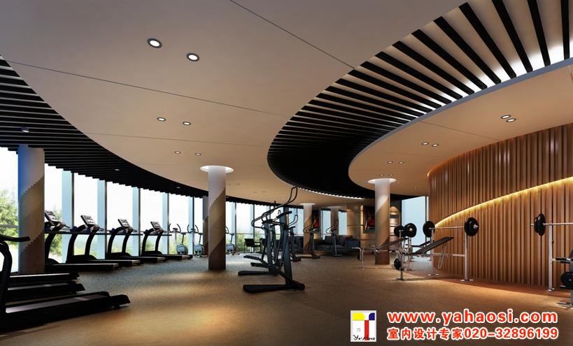 动感单车房。动感单车房的装修和操房差不多,也要求注意与整个健身房的融合统一。