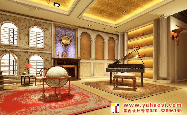 另外,在欧式的影楼设计中,灯光的使用也同样需要我们用心去做。欧式装修风格主光源灯光的色调以暖色调为主,可采用吊顶灯来烘托气氛。局部区域如相册、特色产品展示区等,可选用冷光射灯,使产品更加的突出。