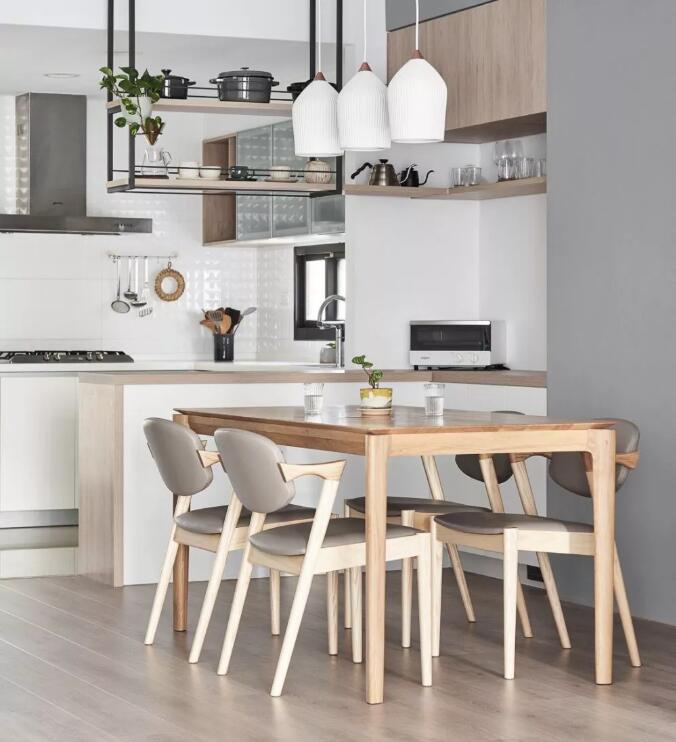 如果餐厅靠近厨房,建议直接融入厨房,几步就可以端菜收拾碗筷,动线流畅度无话可说。同时也可以避免一家人在外面吃甜食,但是你在厨房努力工作,做饭的时候可以找人帮忙。有没有很好的皮肤?!