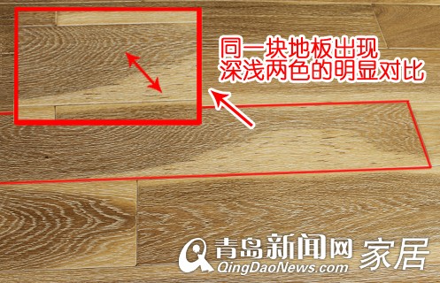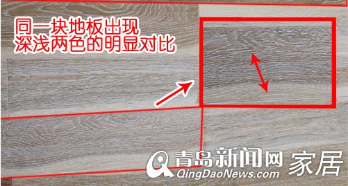 近日,青岛新闻网家居频道接到魏东幸福二期业主张先生的电话,称12月22日刚安装的扬子地板不仅出现了严重的色差问题,商家还将两箱不属于自己购买型号的地板混合在一起。在致电客户服务电话失败后,张先生向青岛新闻网寻求帮助,看看这是否属于地板质量问题。1月10日,新闻网记者与地板行业专家预约,到张先生家检查地板问题。